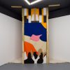 Plywood, floor paint, jesmonite, aqueous pigments, wood, felt, cotton, river sand, funny gummy, acrylic paint, acrylic, paper tape
