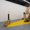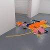 Felt, polycotton, plywood, acrylic paint, aqueous pigments, wood and white marble gravel