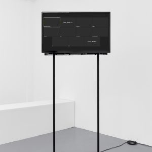 HD video, color,1′ loop, displayed on a 16:9 wide screens, mounted on an iron structure lacquered in black, edição de 1+1PA / edition of 1+1AP